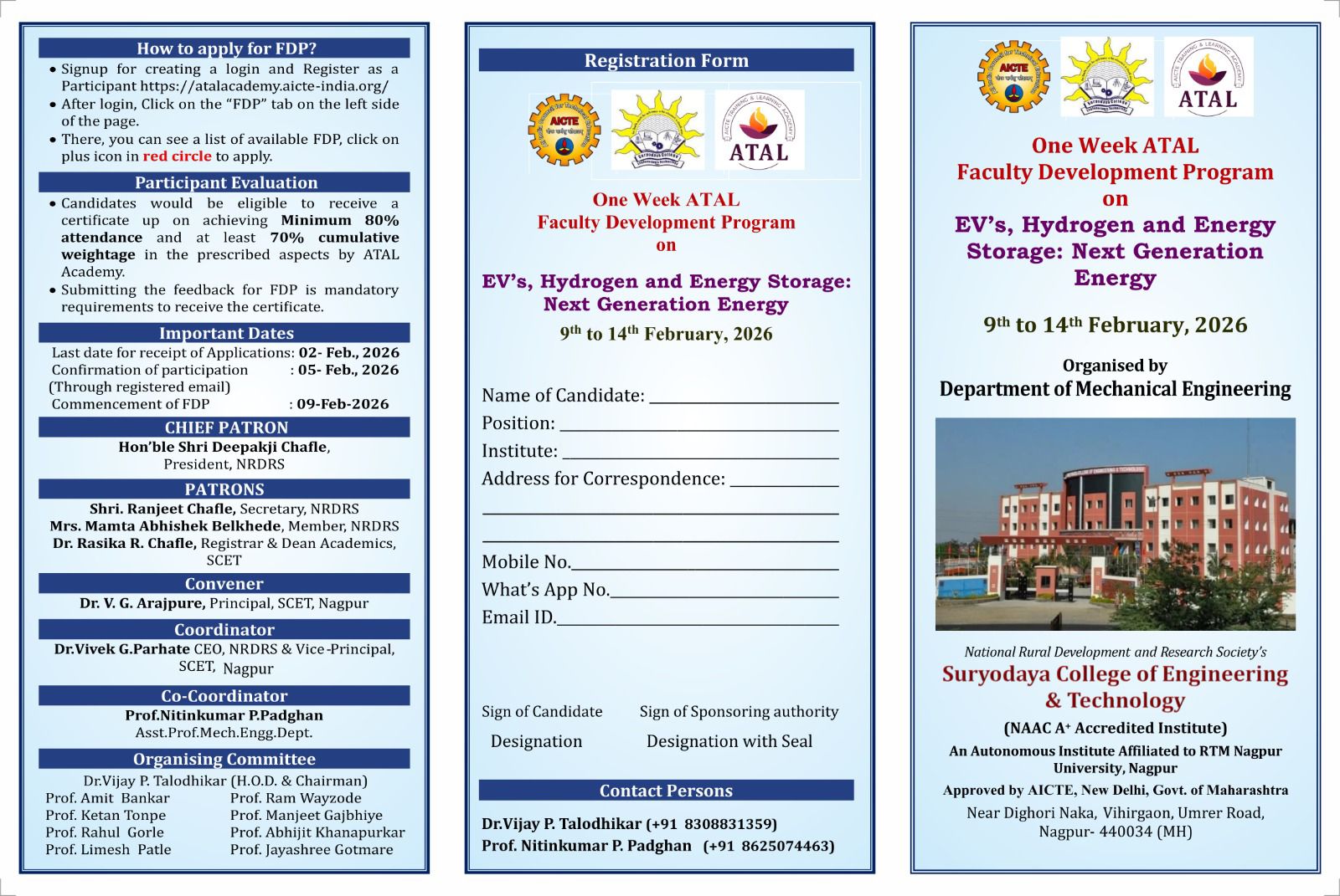 Suryodaya College of Engineering & Technology (SCET) is run by the National Rural Development & Research Society. Located just at a distance of 1.5 Kms. from Dighori Square on Umrer road, SCET premises has everything that is expected by a world-class institution. The serene environment, lush green surrounding, state-of-the-art infrastructure, visionary management that is set on a mission of creating the world-class institution, is surely going to deliver “Technocrats Par Excellence”.