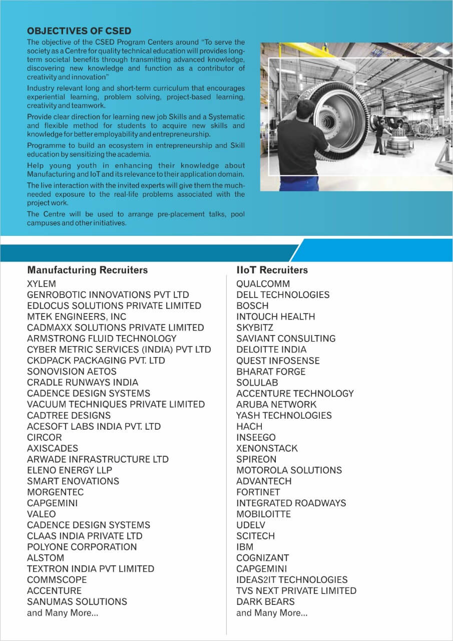 The objective of the CSED Program Centers around “To serve the society as a Centre for quality technical education will provides long-term societal benefits through transmitting advanced knowledge, discovering new knowledge and function as a contributor of creativity and innovation